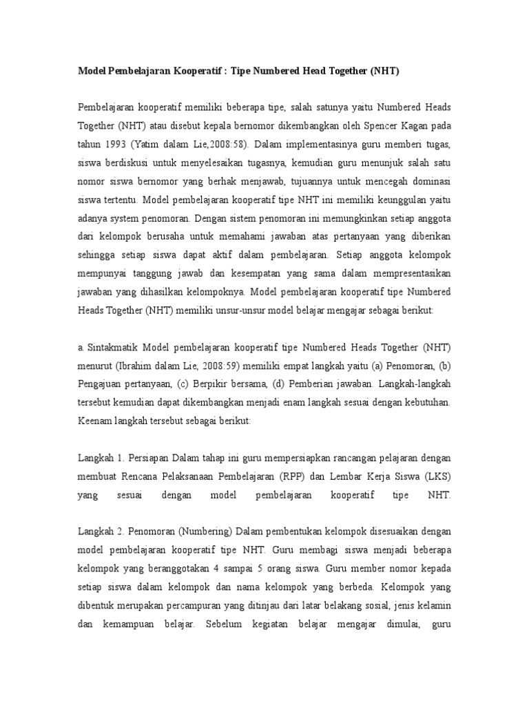 Pembelajaran Kooperatif Model Nht Numbered Heads Together