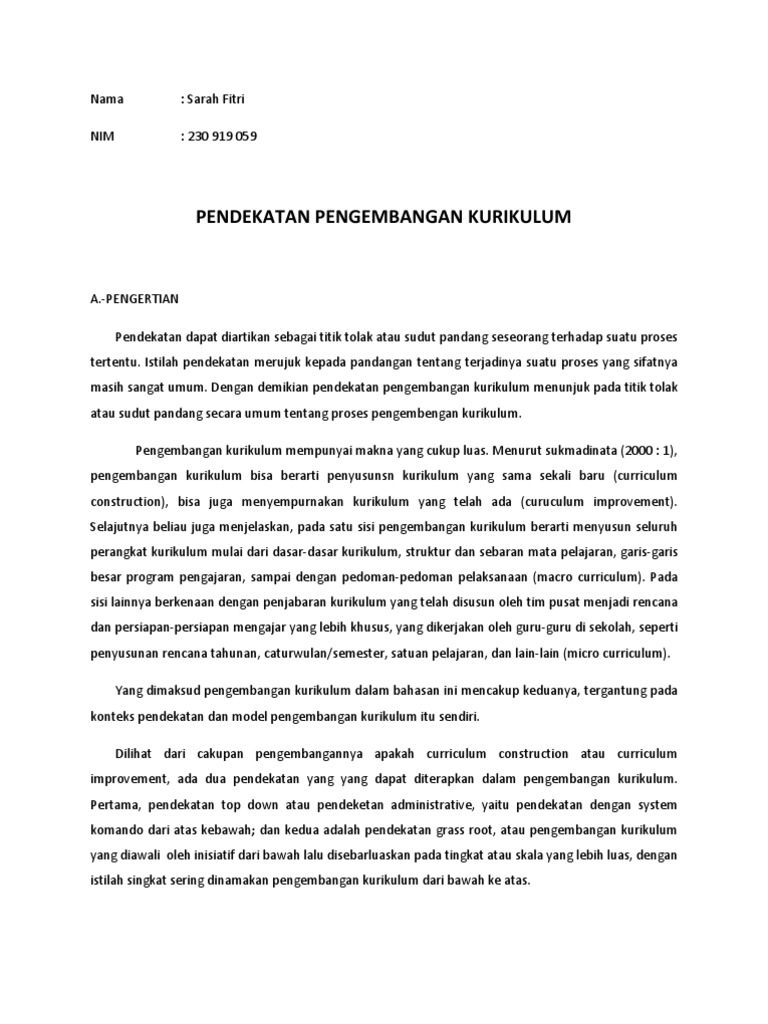 Doc Pendekatan Dan Model Kurikulum Siti Napilah Ririn