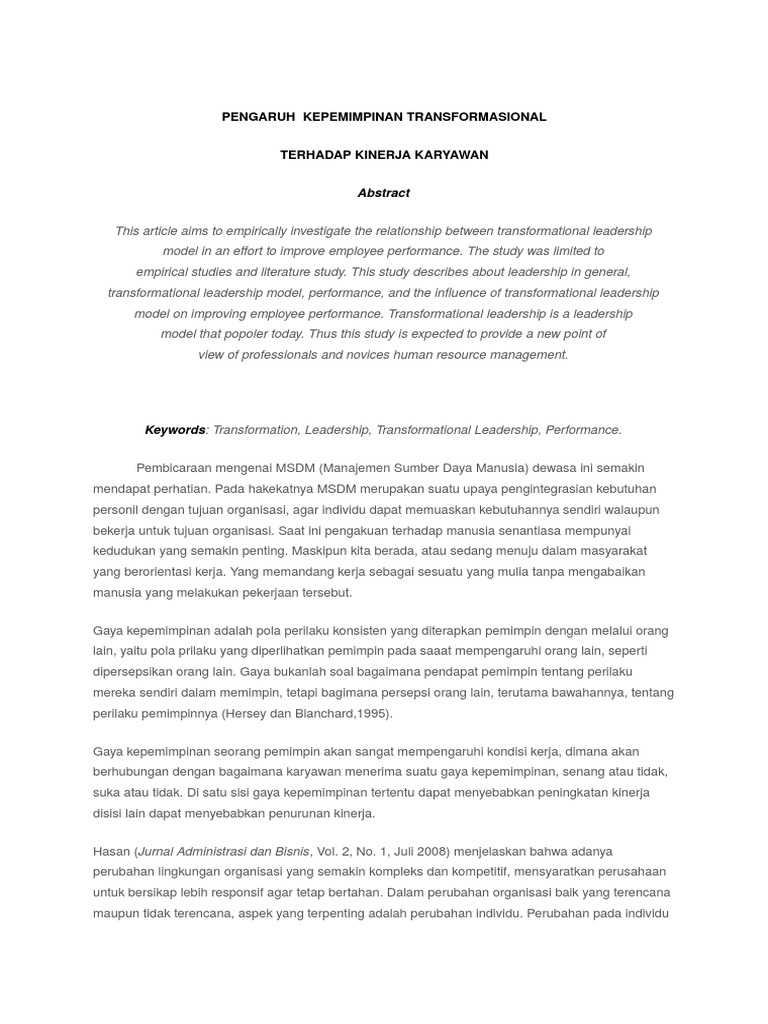 Pengaruh Kepemimpinan Transformasional Terhadap Kinerja