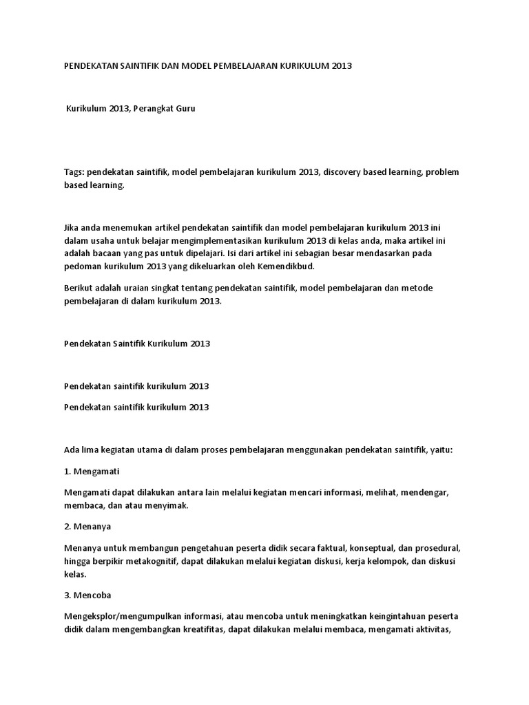 Pendekatan Saintifik Dan Model Pembelajaran Kurikulum 2013