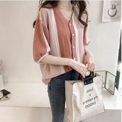 Bayar Di Tempat Atasan Lengan Pendek Model Longgar Garis Baju Pakaian Wanita 3916