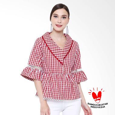 Rimini 2018022 Motif Kotak Blousse Atasan Wanita Red