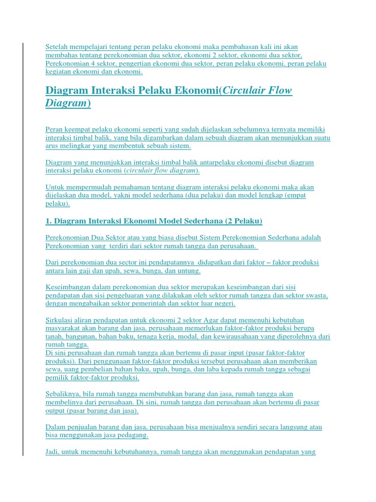 Informasi mengenai Model Diagram Interaksi Antar Pelaku Ekonomi Dua Sektor.