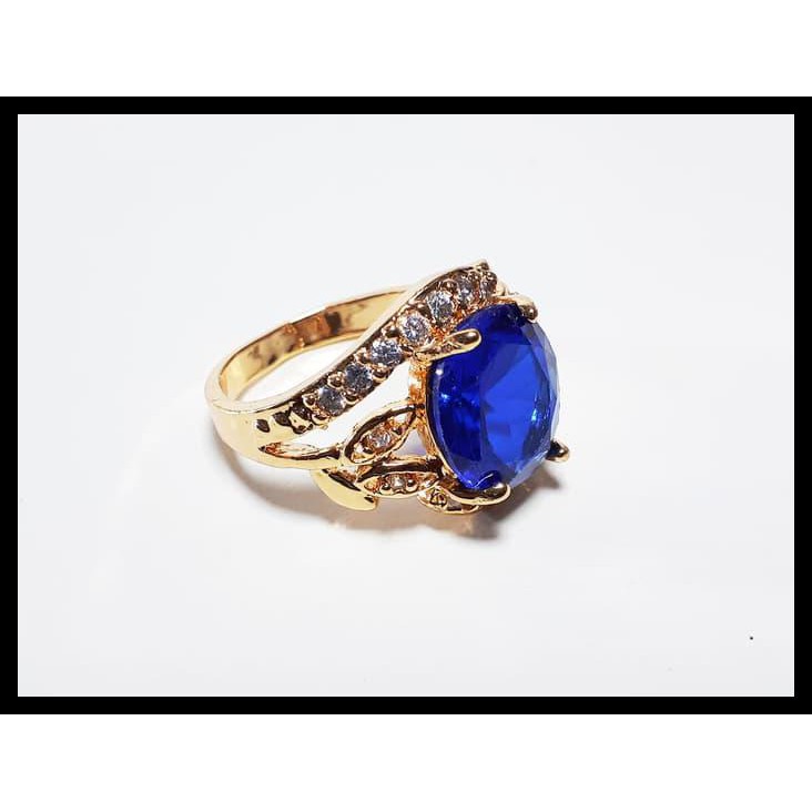Terbaru Termurah Terlaris Vee Cincin Wanita Lapis Emas Batu Merah Delima Siam Oval Cutting