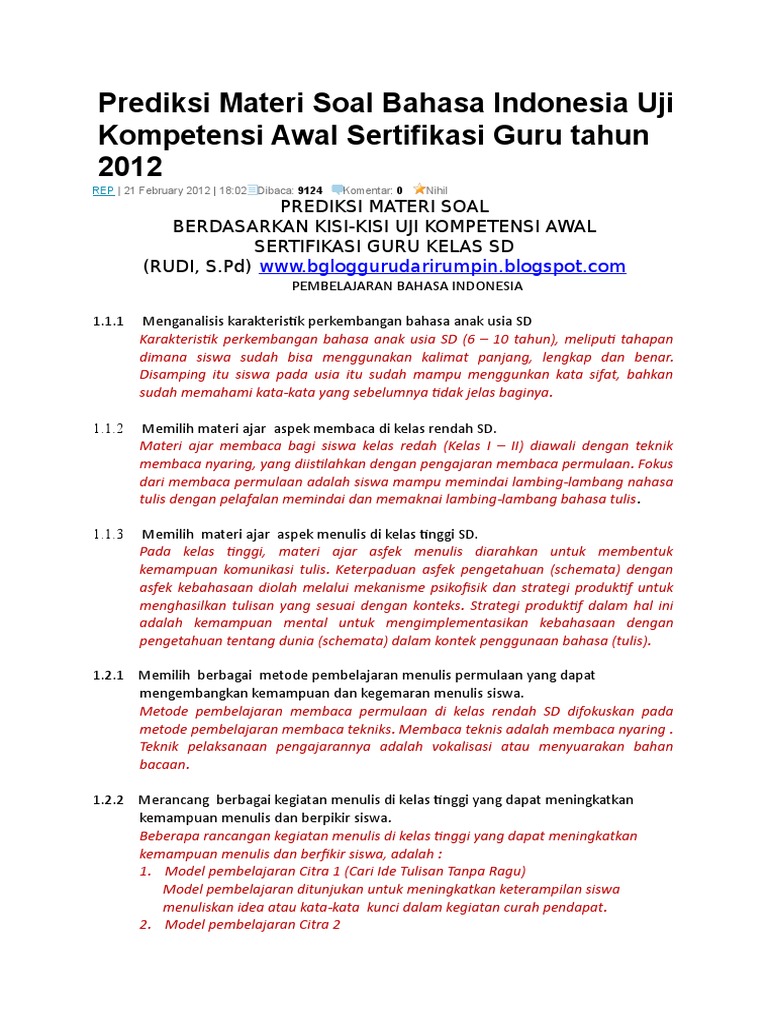 Materi Keterampilan Bahasa Indonesia Di Sd
