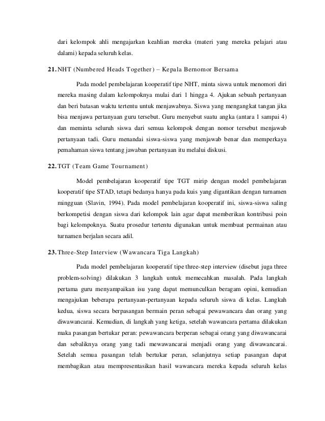 Doc 25 Contoh Model Pembelajaran Kooperatif Untuk Guru