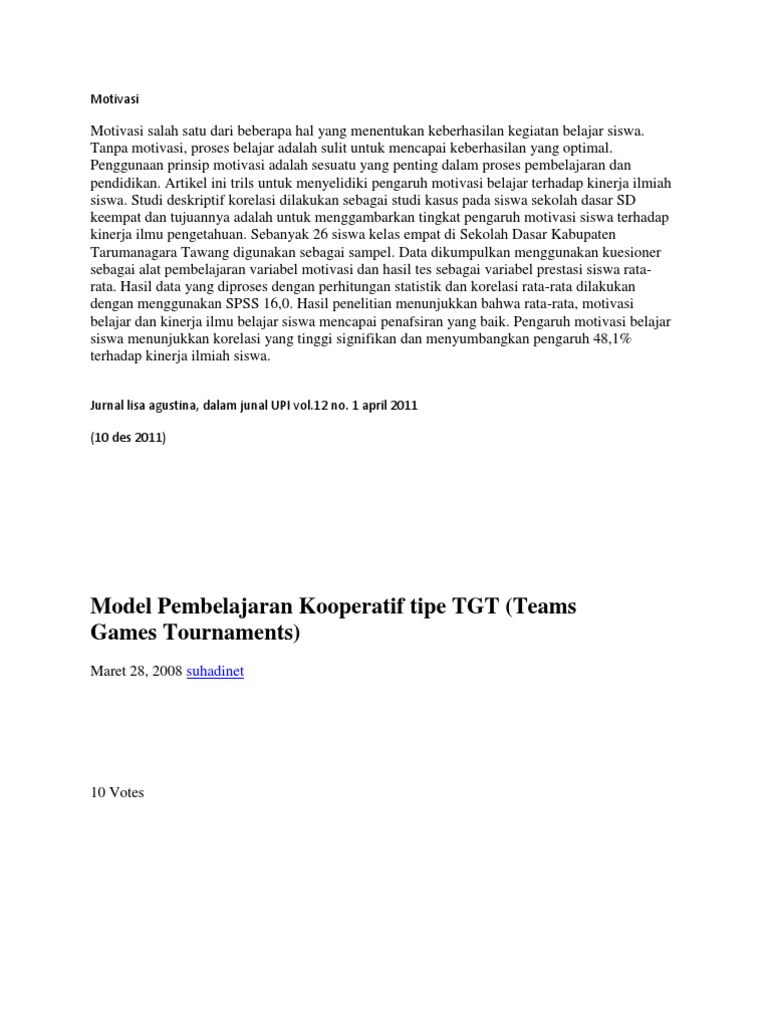 Pdf Penerapan Model Pembelajaran Kooperatif Tipe Tgt Untuk