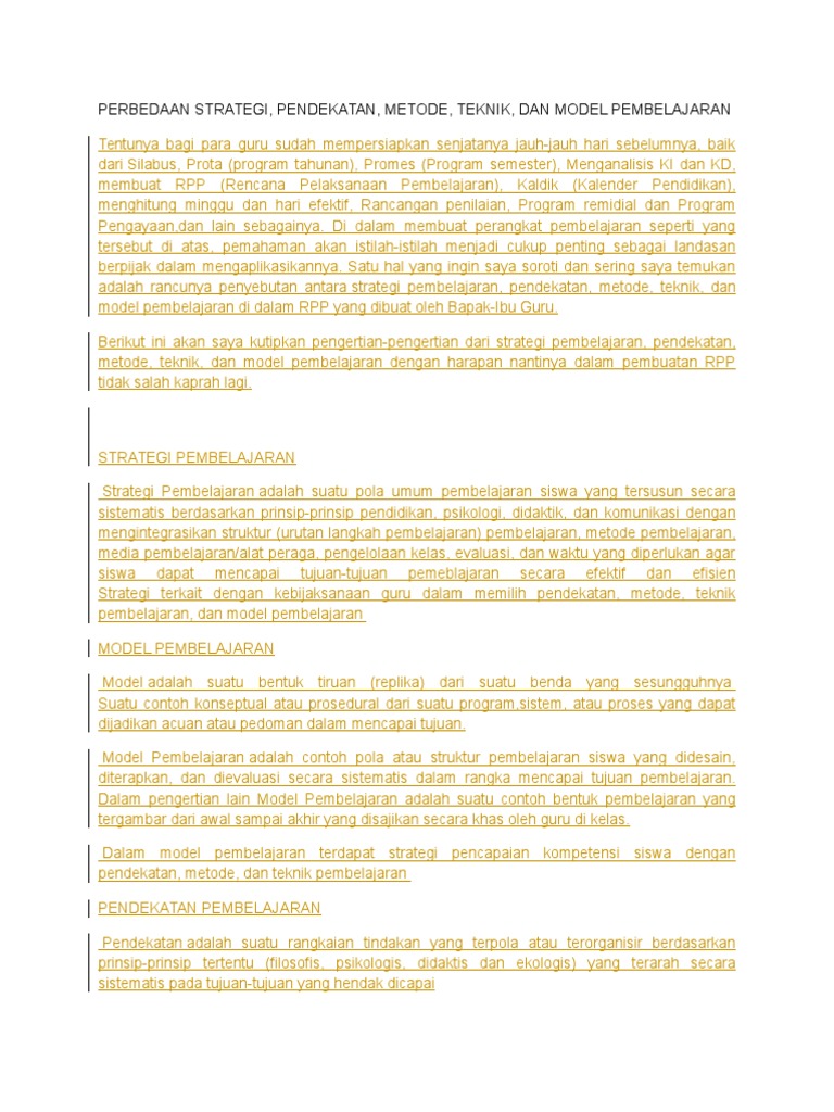 Perbedaan Pendekatan Strategi Metode Teknik Model