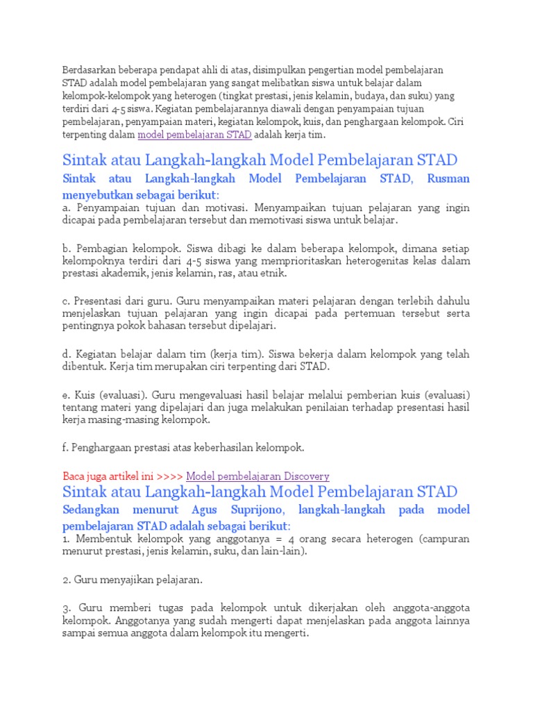 Berikut informasi sepenuhnya tentang sintaks model pembelajaran kooperatif tipe stad. Admin blog Seputar Model 2019 juga mengumpulkan gambar-gambar lainnya terkait sintaks model pembelajaran kooperatif tipe stad dibawah ini.