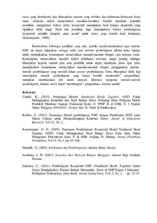 Penerapan Model Pembelajaran Kooperatif Tipe Nht Numbered