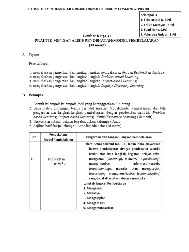 Lk 31 Analisis Pendekatan Model Pembelajaran Kelompok 3