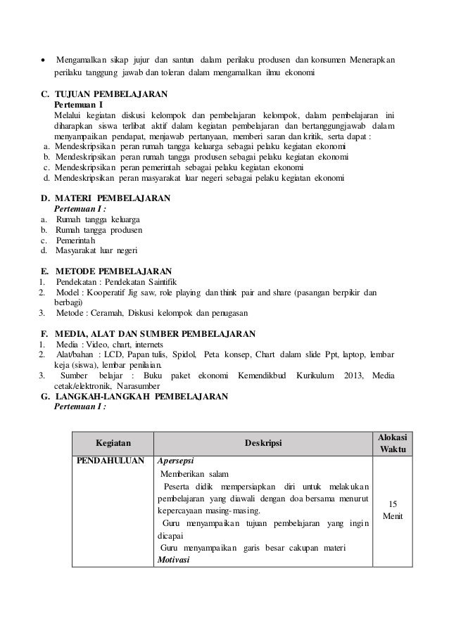 Rpp Kelas X Pelaku Kegiatan Ekonomi Metode Role Playing