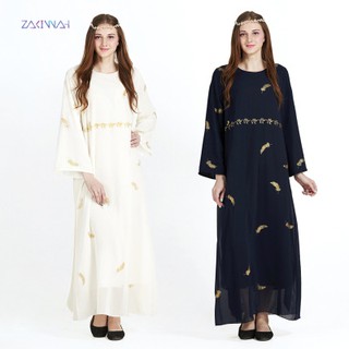 Fashion Wanita Long Dress Muslimgamis Bahan Sifon Motif Bulu