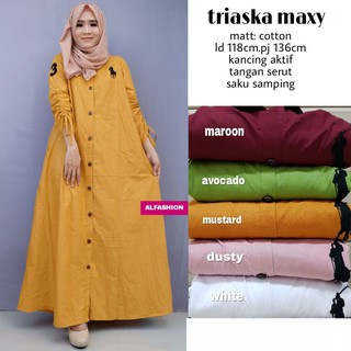 Triaska Maxy Bju Gamis Dress Busui Polo Tiga Ajib Ld 118 Kancing Depan Atas Sampai Bawah Terbuka