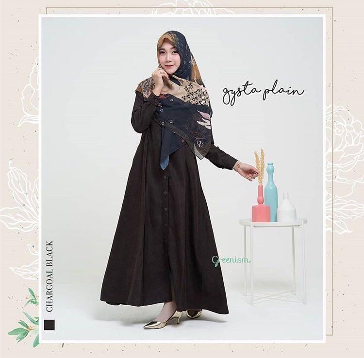 Gamis By Greenism Gysta Plain Dress Womens Fashion