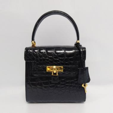 Novaecroco 11007b Kulit Buaya Tas Wanita Black Gloss