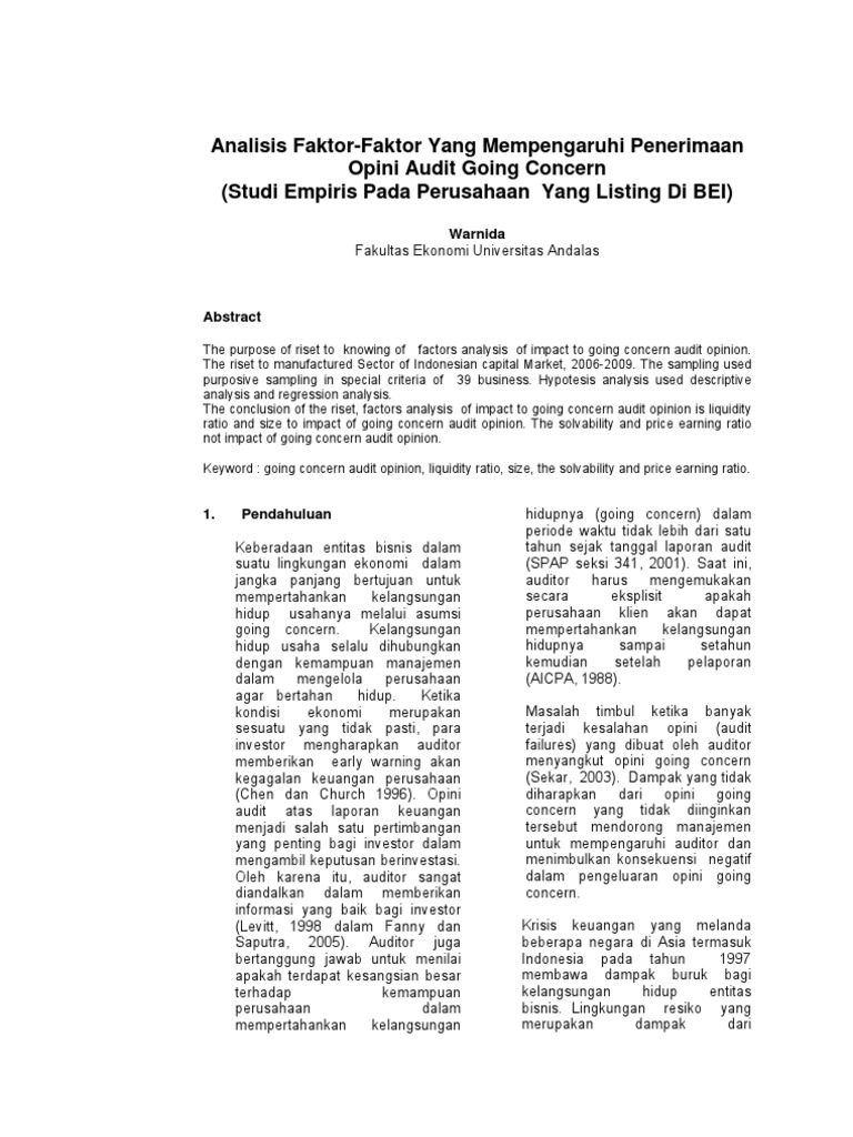 Penerimaan Opini Audit Going Concern Kajian Berdasarkan