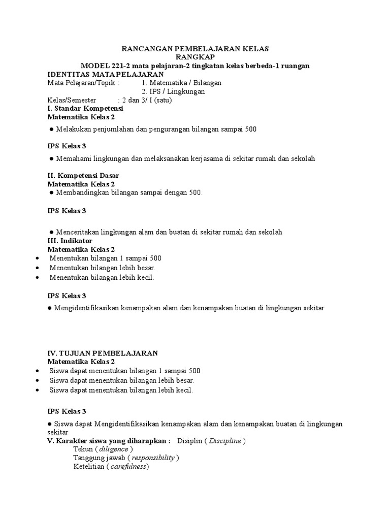 Rpp Kelas Rangkap Sd Model 221 Berkas File Guru