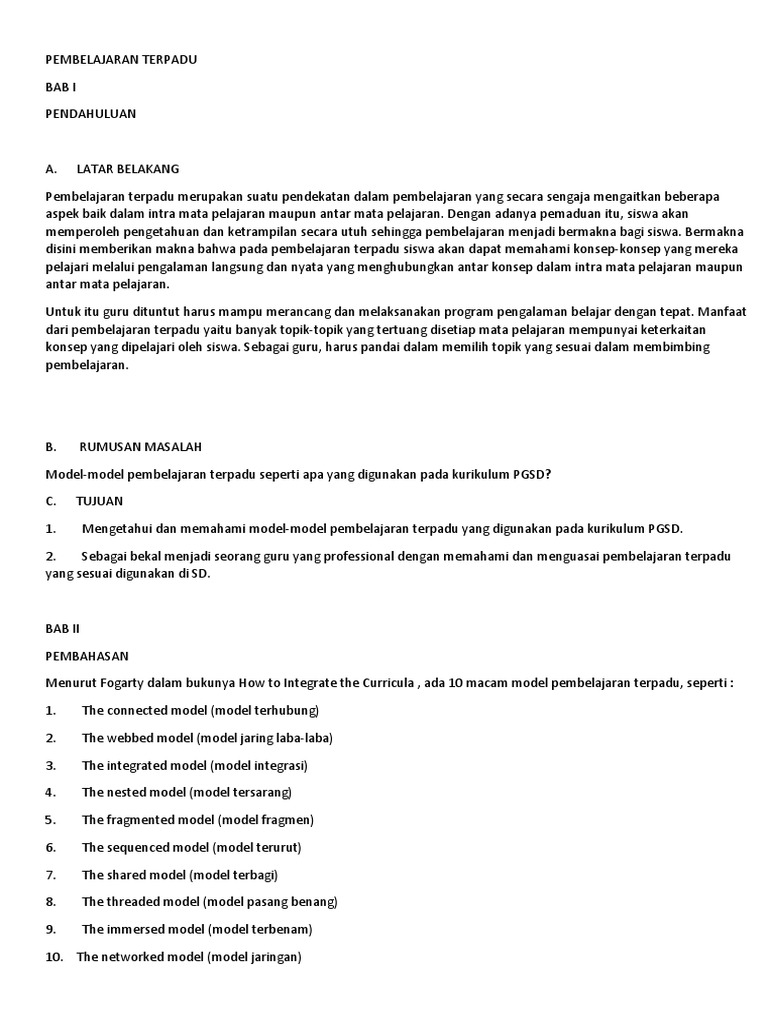 Model Pembelajaran Pkn Bag Ii Model Terpadu Sdn 3