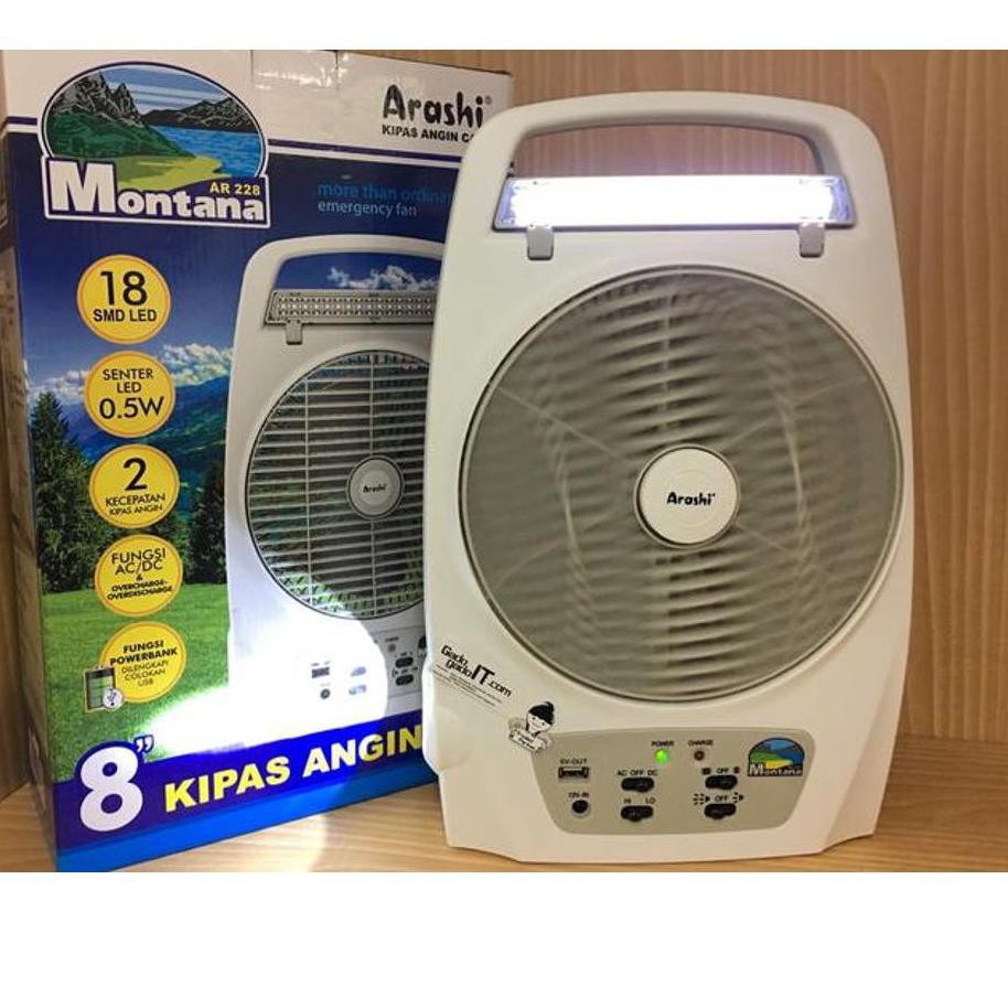 Zlh Kipas Cas Emergency Fan Charge Arashi Montana Ar 228 Powerbank Ac Dc