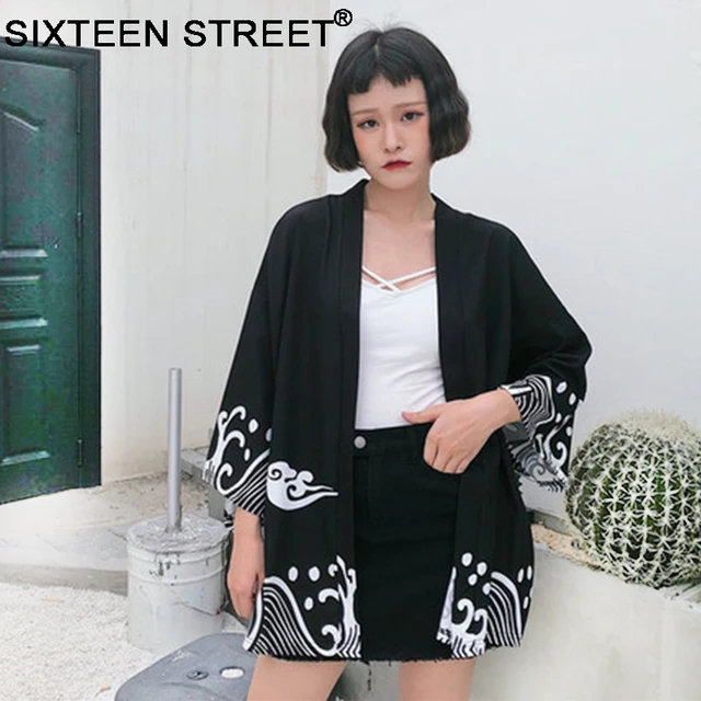 Us 1449 31 Off2018 Baru Gaya Jepang Wanita Kimono Jubah Musim Panas Matahari Pakaian Pelindung Wanita Tipis Mantel Hitam Kemeja Longgar Cardigan