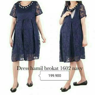 Dress Pesta Brokat Ibu Hamil Menyusui Biru Navybaju Kerja Bumil Busuigaun Pesta Jumbo Xxl