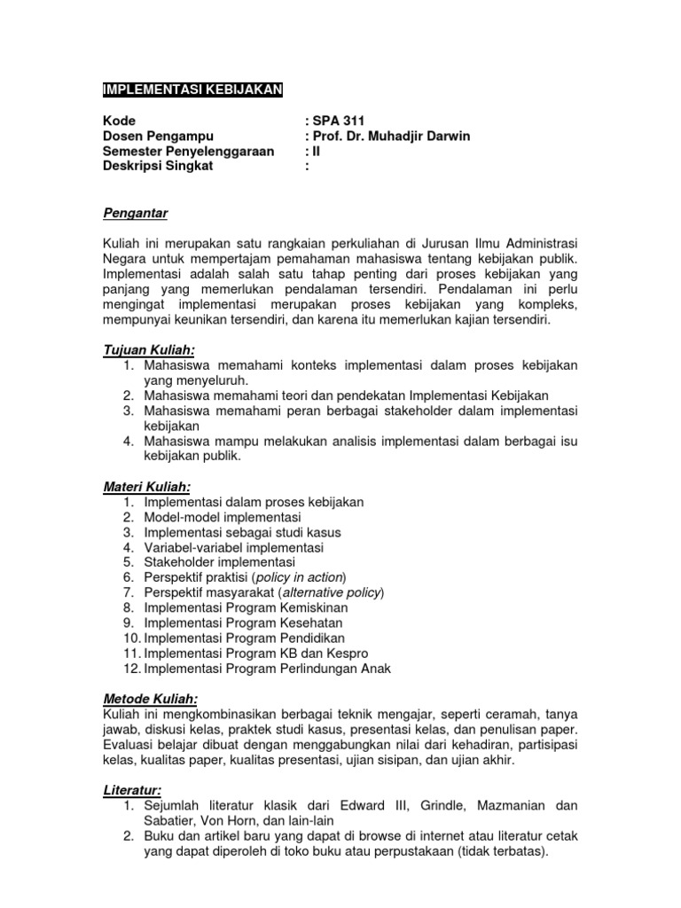 Pdf Implementasi Kebijakan Apa Mengapa Dan Bagaimana