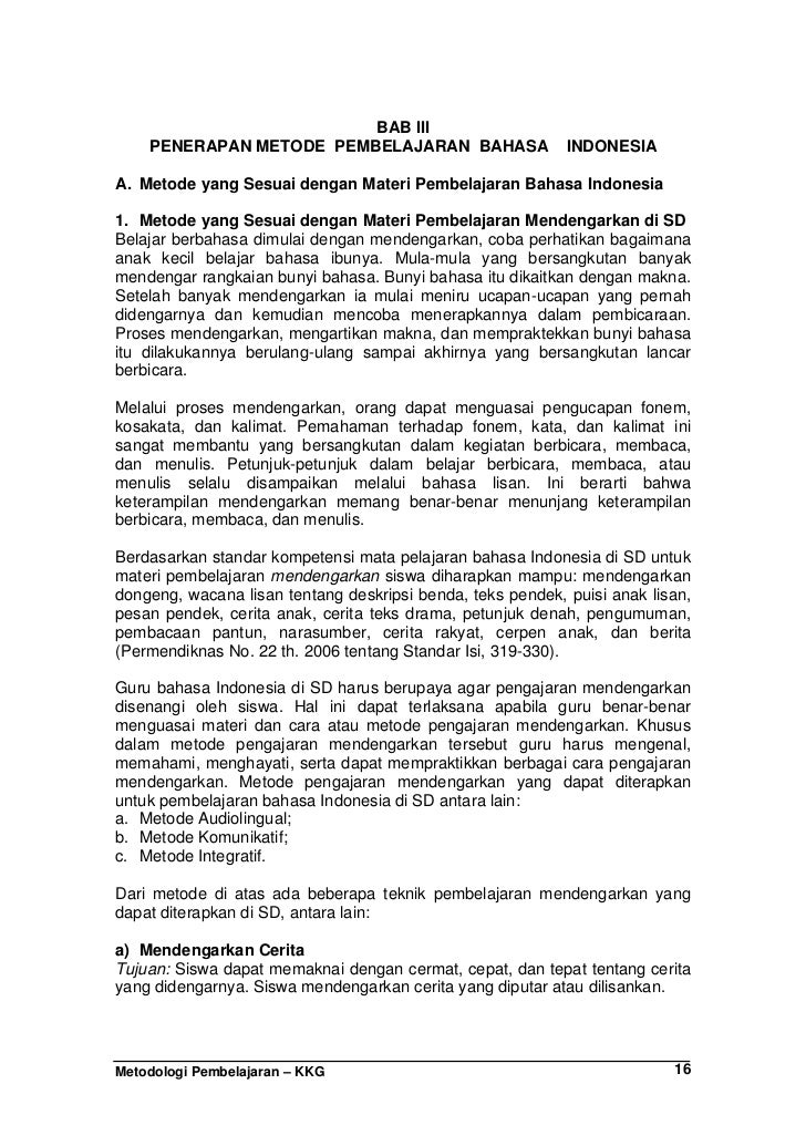 Materi Pembelajaran Bahasa Indonesia Di Kelas