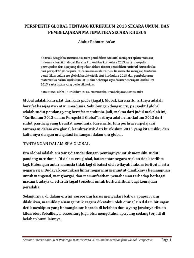 Perspektif Global Penerapan Kurikulum 2013 Secara Umum