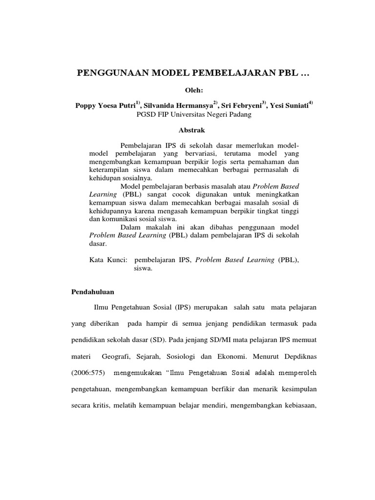Penggunaan Model Pembelajaran Pbl Oleh Poppy Yoesa