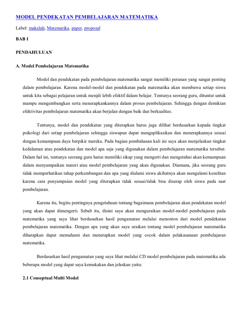 Model Pendekatan Pembelajaran Matematika