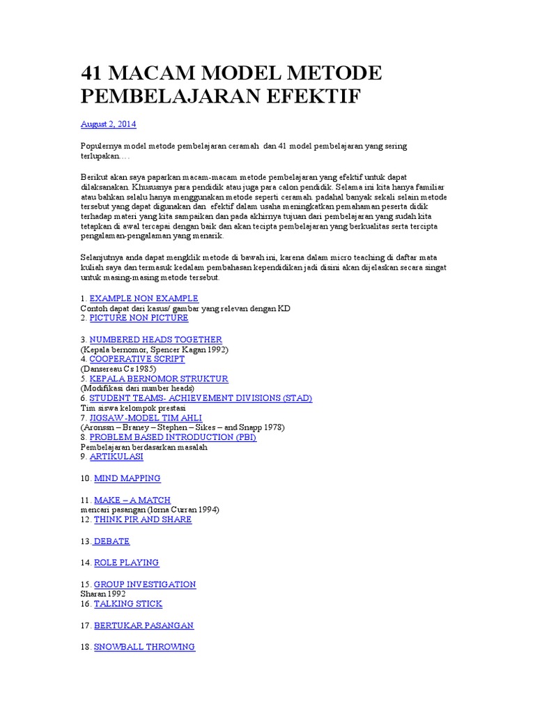Macam Macam Model Pembelajaran Yang Efektif Dan Optimal