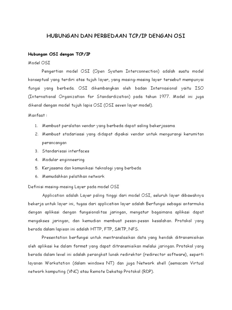 Persamaan Dan Perbedaan Dari Osi Reference Model Dan Tcpip