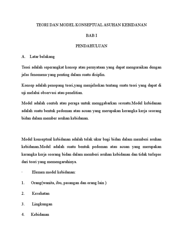 Teori model konseptual asuhan kebidanan deskripsi singkat pada bab ini akan dibahas tentang teori model konseptual asuhan kebidanan yang merupakan bagian dari konsep kebidanan. Konsep adalah suatu keyakinan yang kompleks terhadap suatu obyek benda suatu.