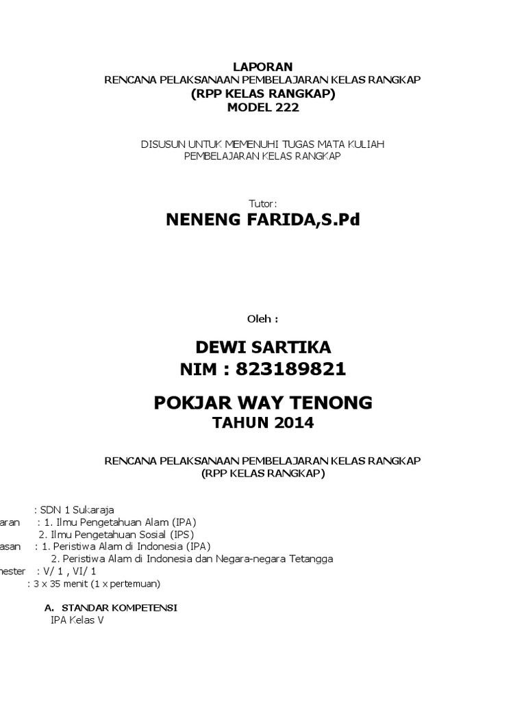 Rpp Kelas Rangkap Model 222