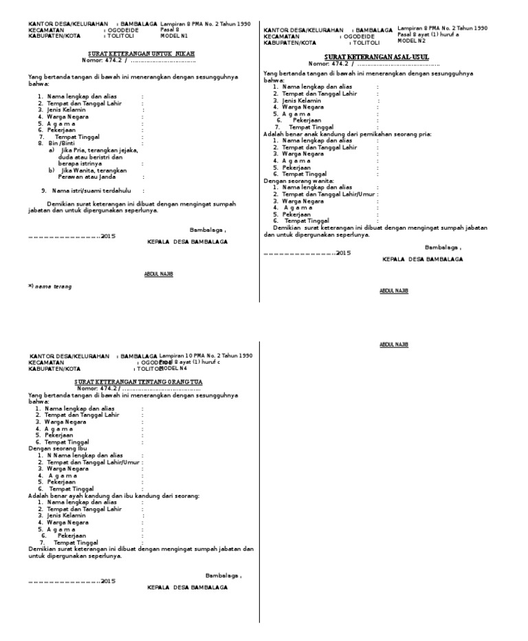 Surat Keterangan Untuk Nikah N 1 Sd N 7 Perlu Disesuaikan
