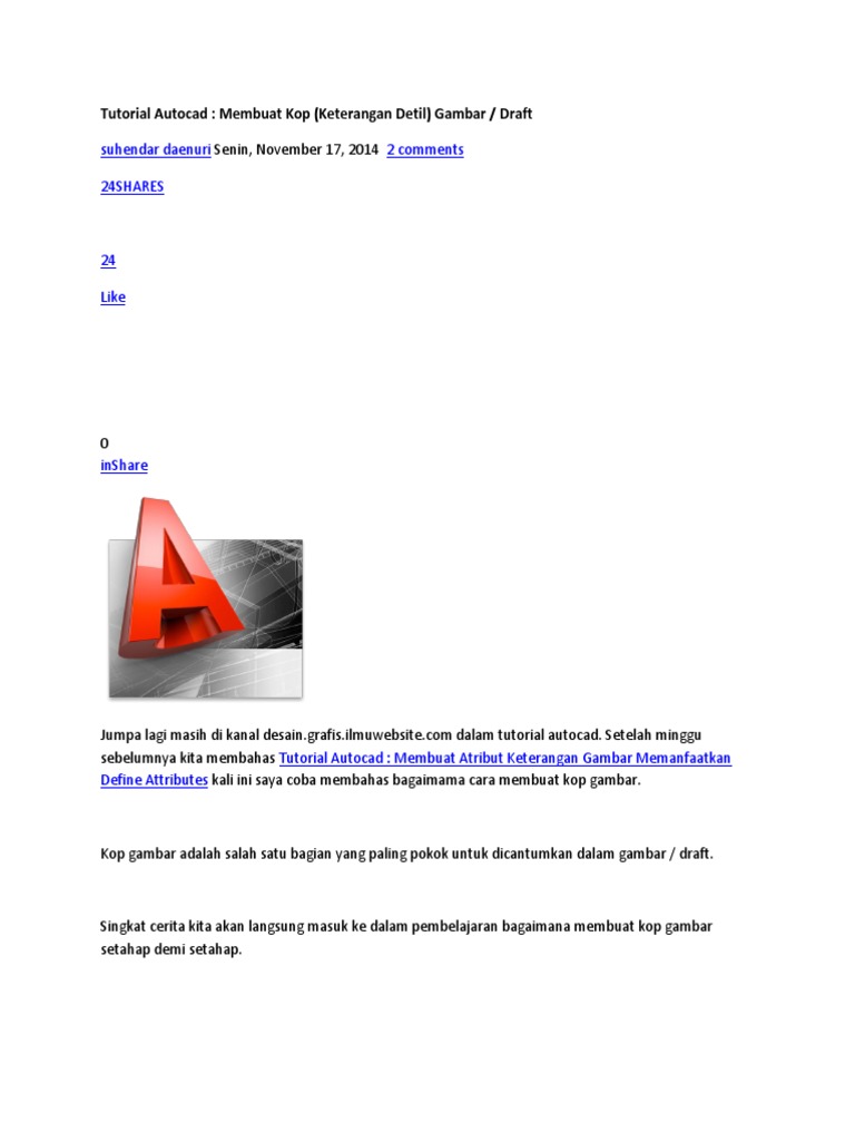 Tutorial Autocad Membuat Kop Keterangan Detil Gambar