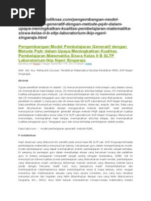 Pengembangan Model Pembelajaran Generatif Dengan Metode Pq4r