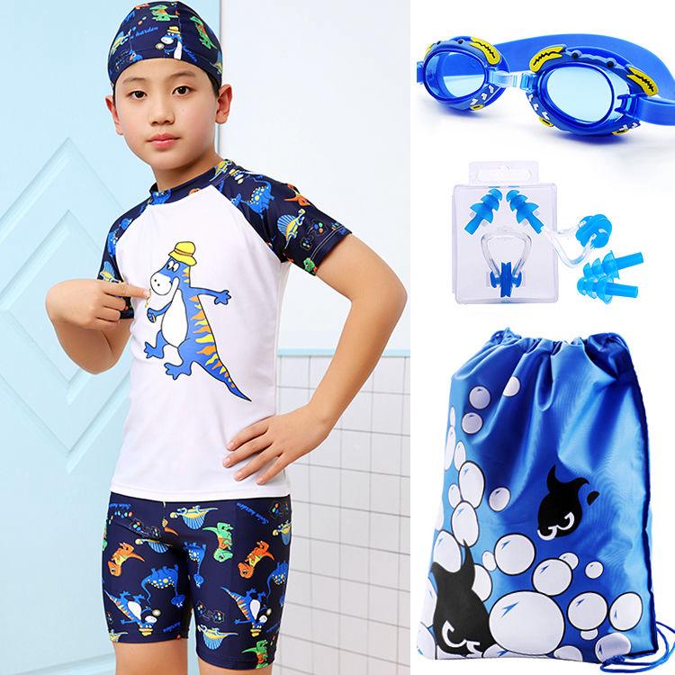 Set Baju Peralatan Renang Lengan Pendek Dan Celana Tas Aneka Motif Untuk Anak Laki Laki
