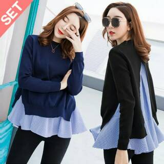 Model Baju Atasan Blouse Panjang Wanita Terbaru Kekinian 2 In 1 Blouse Lengan Panjang Wanita Murah