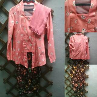 Set Kebaya Kutubaru Premium Peach Free Jilbab Segi Empat Kutu Baru Kebaya Preloved