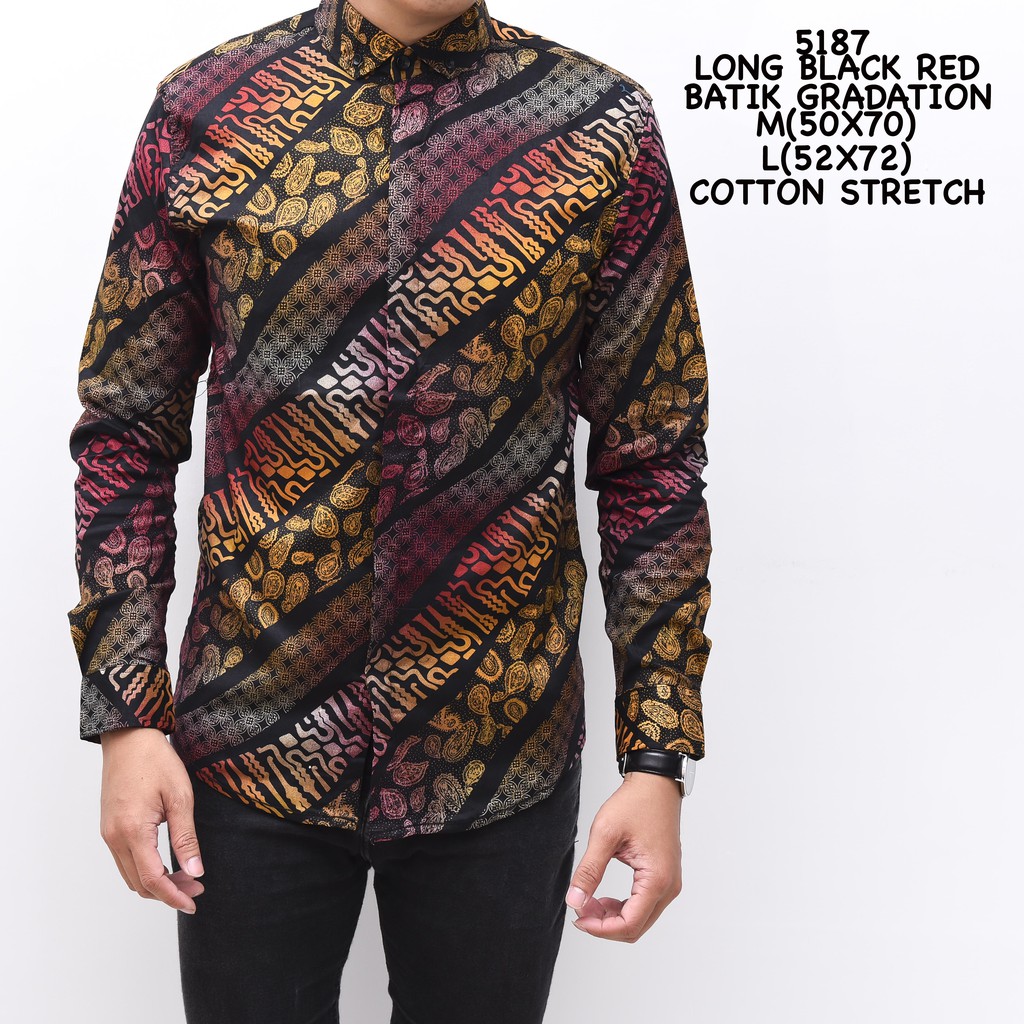 5187 Long Black Red Batik Gradation Ml Kemeja Batik