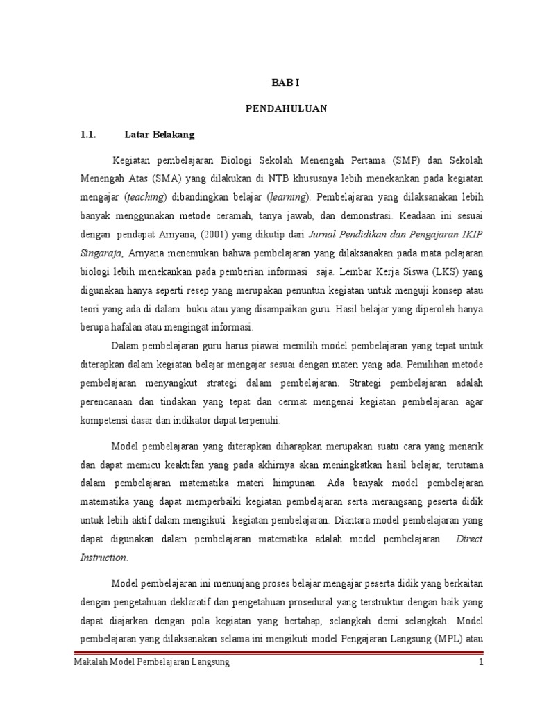 Ptk Biologi Penerapan Model Pembelajaran Langsung Direct