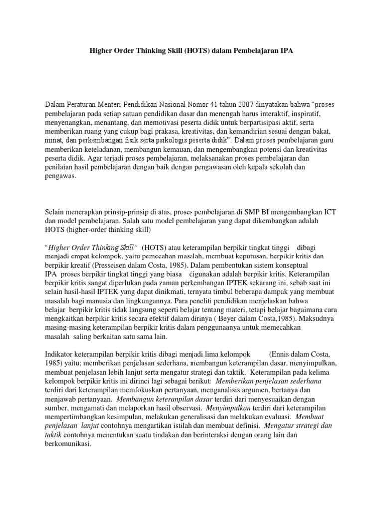 Apa Itu Higher Order Thinking Skills Hots Yang Akan Ada Di