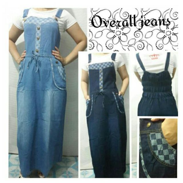 Overall Jeans Denim Rok Panjang Kodok Muslim Dress Hijab