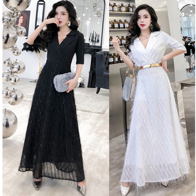 Long Dress Model Lengan Setengah Dengan Sabuk Untuk Wanita