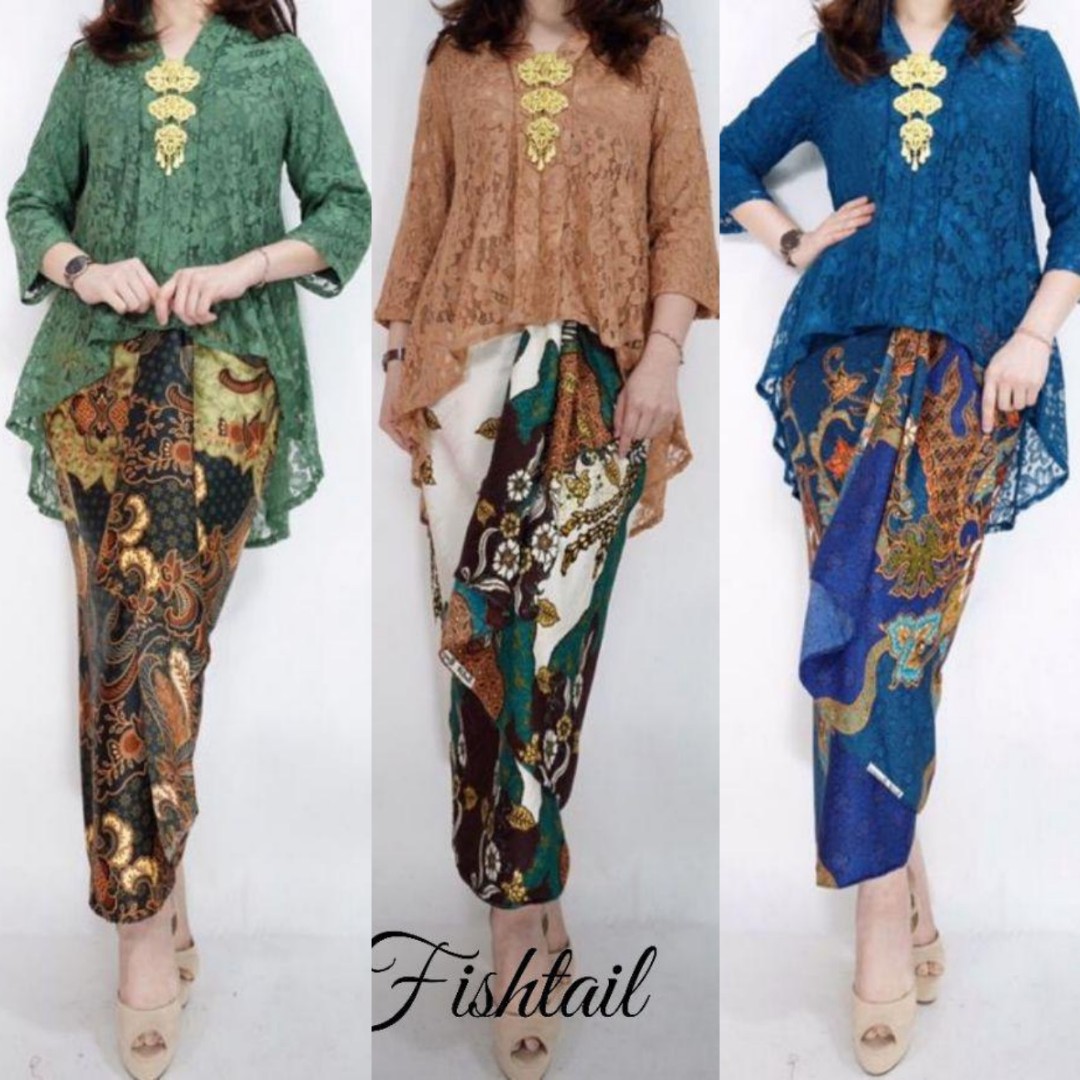 Fishtail Lace Kebaya With Printed Satin Pario Skirt Po 50