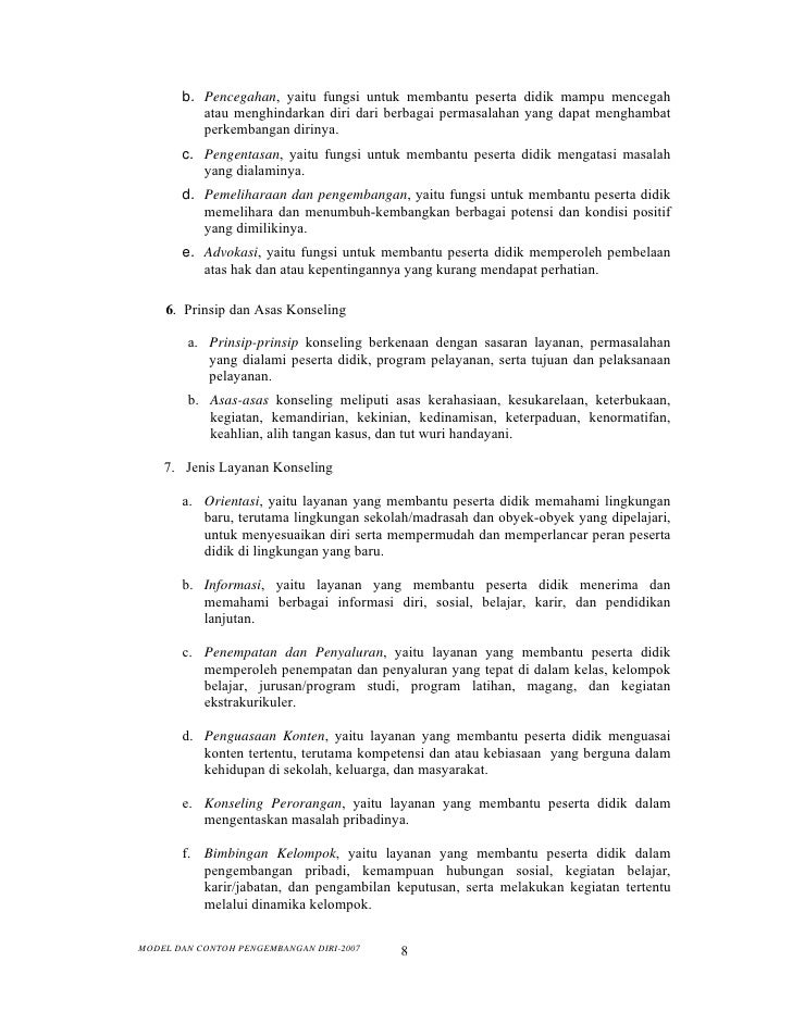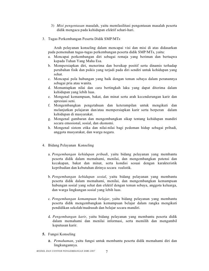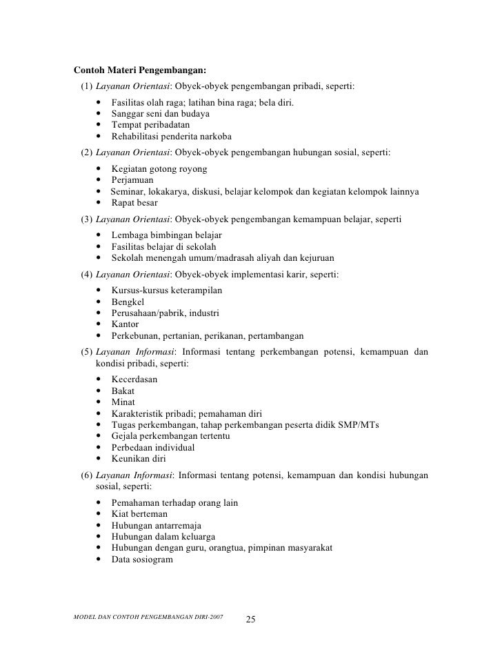 Berikut yang anda butuhkan terkait Model Dan Contoh Pengembangan Diri Smp.