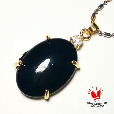 Vee Batu Giok Hitam Oval Liontin 24x16