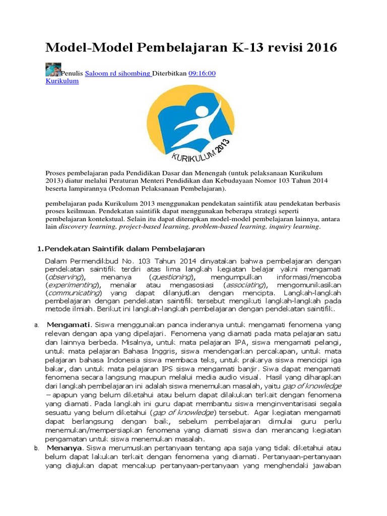 Inilah rekomendasi tentang Model Model Pembelajaran Kurikulum 2013 Pdf.